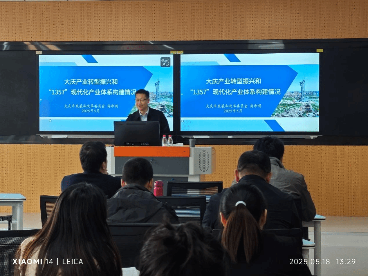 5月18日下午,大庆市发展和改革委员会党组成员、副主任蒋希明以《大庆产业转型振兴与“1357”现代化产业体系构建》为主题,通过详实的数据与政策分析,阐述了大庆从资源型城市向多元化产业体系转型的路径与成果,为学员理解区域经济发展提供了实践范本。
