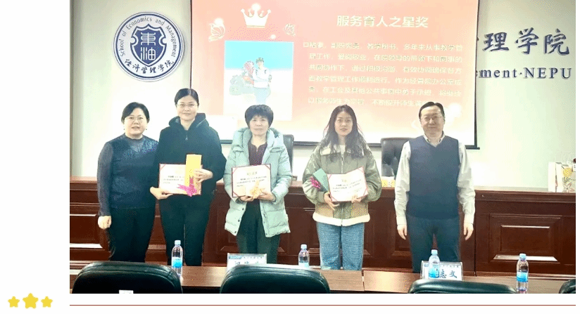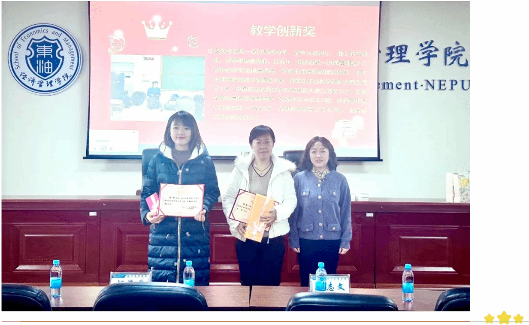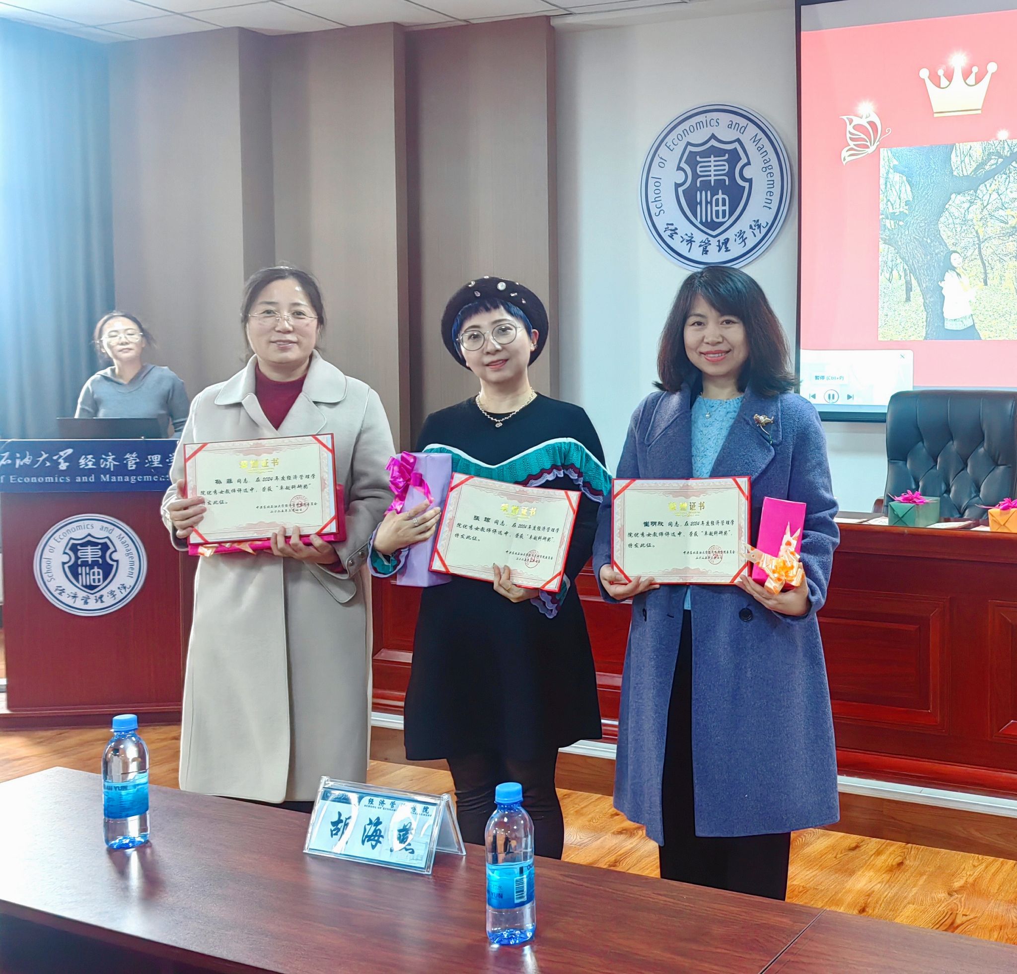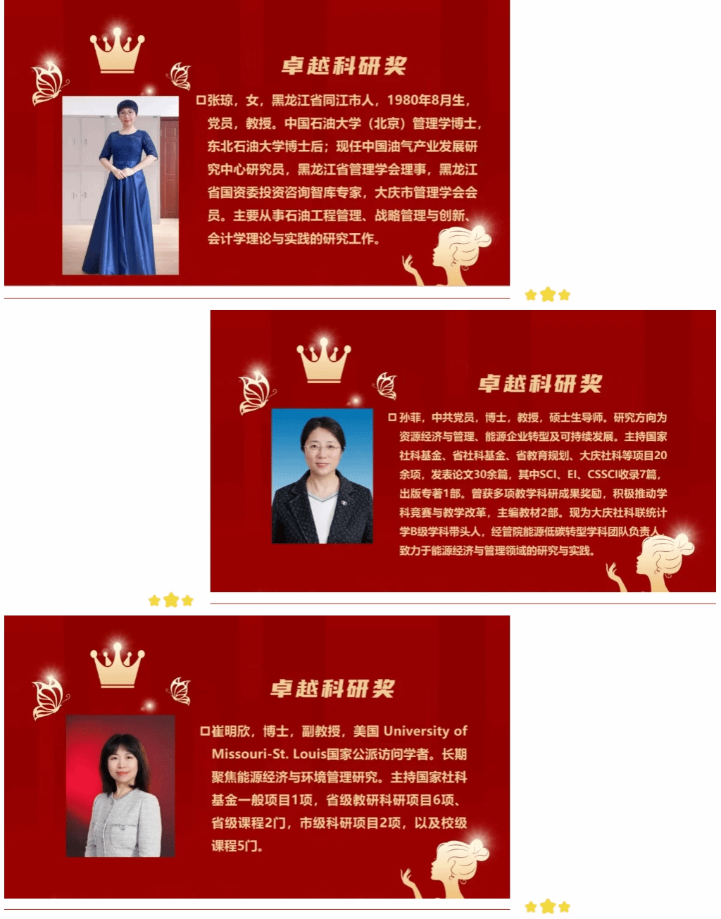 在教育的田野中,有这样一群女性,她们以智慧为笔,以科研为犁,深耕细作,默默奉献。张琼老师、孙菲老师、崔明欣老师评选为“卓越科研奖”。由赵景权书记为三位老师颁奖。