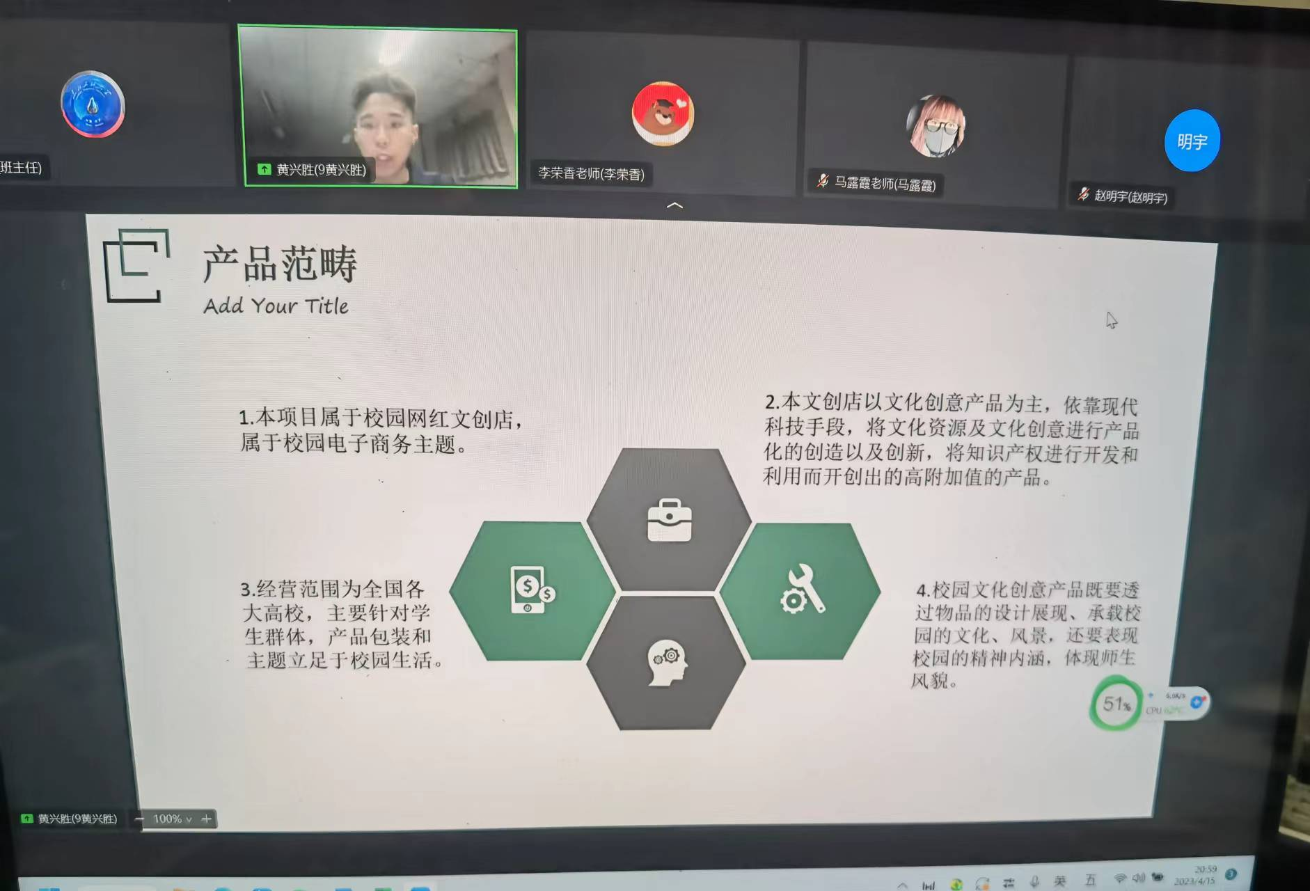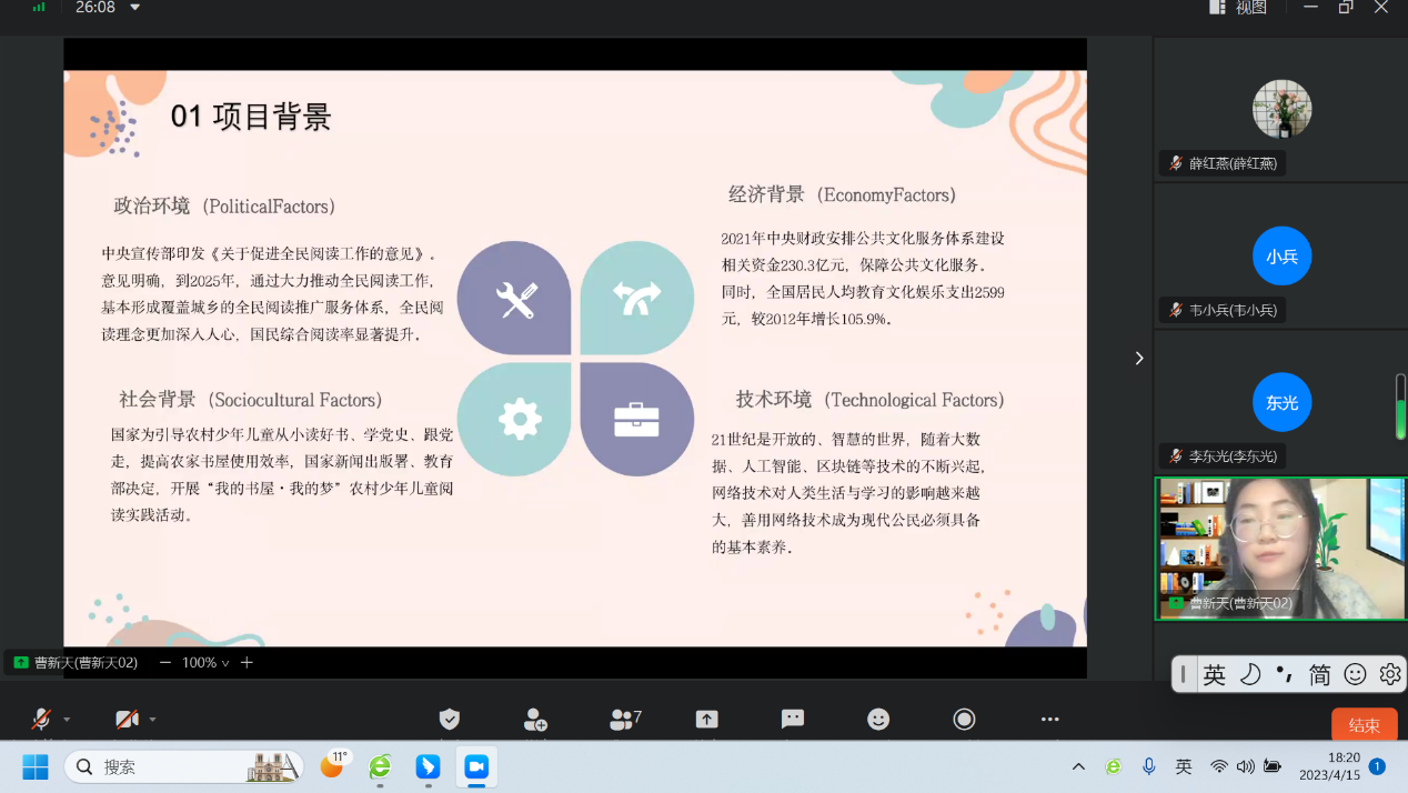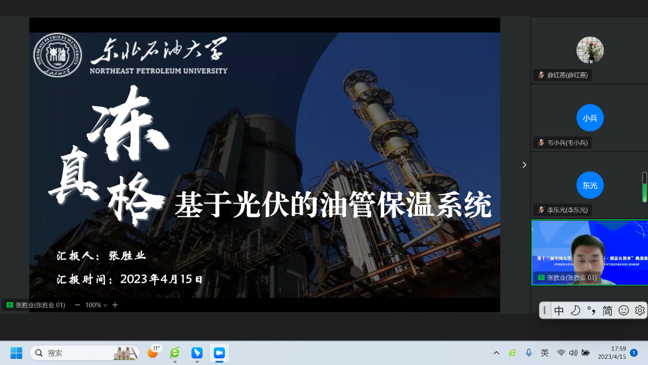 本次三创赛校级,采用线上钉钉会议方式举行,选手们在8分钟内结合PPT等其他多媒体材料对自己的创业计划进行展示,随即进入评委提问环节,提问时间为7分钟。为保证比赛的公平、专业性,成立了以经济管公司赵俊平经理带队的纪检组,教学经理王艳秋带队的仲裁组。并特邀请经管院教师、秦皇岛分院电子商务教师李荣香副教授等校内评委,同时邀请大庆市商务局电子商务科刘少武科长、北京盈信信息科技有限公司、国投盈信秦皇岛科技有限公司董事长兼总经理,沈阳泽加软件科技有限公司总经理,中石油黑龙江省销售公司高级主管等企业专家作为校外评委。初赛和复赛中,评委的专业提问和对参赛项目的建设性点评,给各参赛项目提供了可行性的指导。比赛后员工们普遍反应本次比赛评委点评专业,收获非常大,为项目实施落地提供了有益的参考。