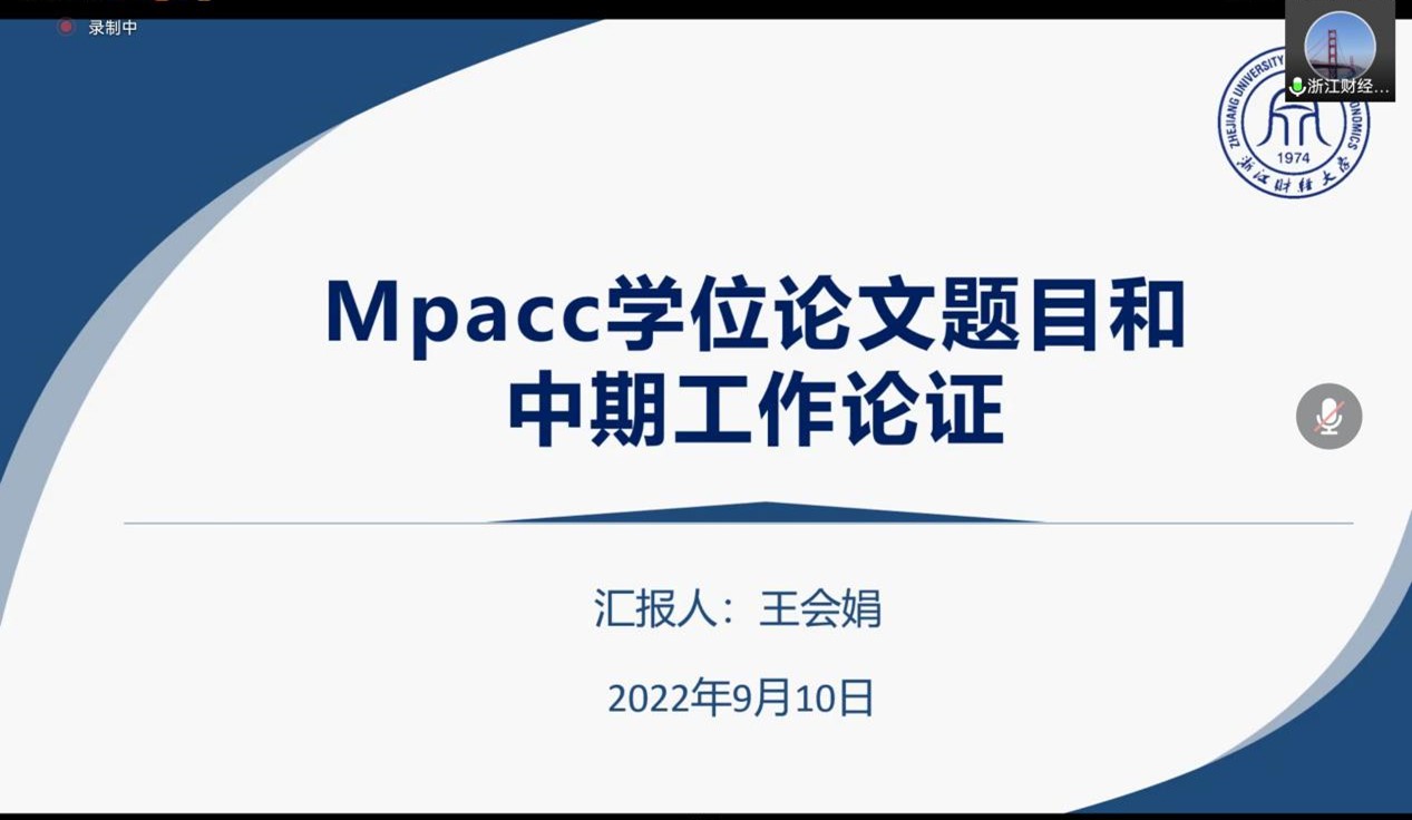 2022年9月11日,unibetMPAcc学位论文论证会在线上隆重举行。中国石油大学(华东)孙燕芳教授、重庆理工大学程平教授、浙江财经大学王会娟教授受邀参会并作报告,unibet全体教师和MPAcc研究生参会。会议由MPAcc中心主任李九斤主持。