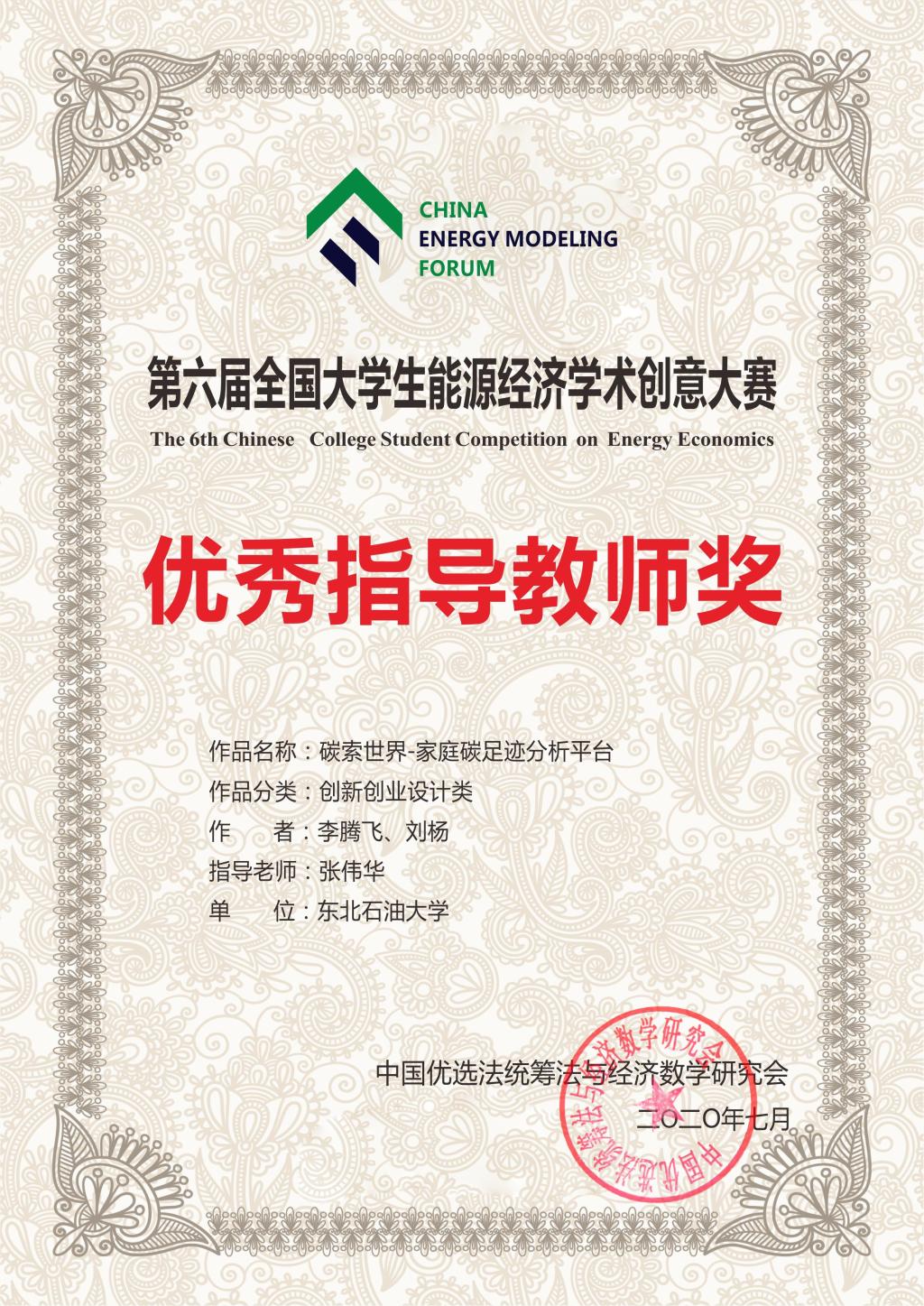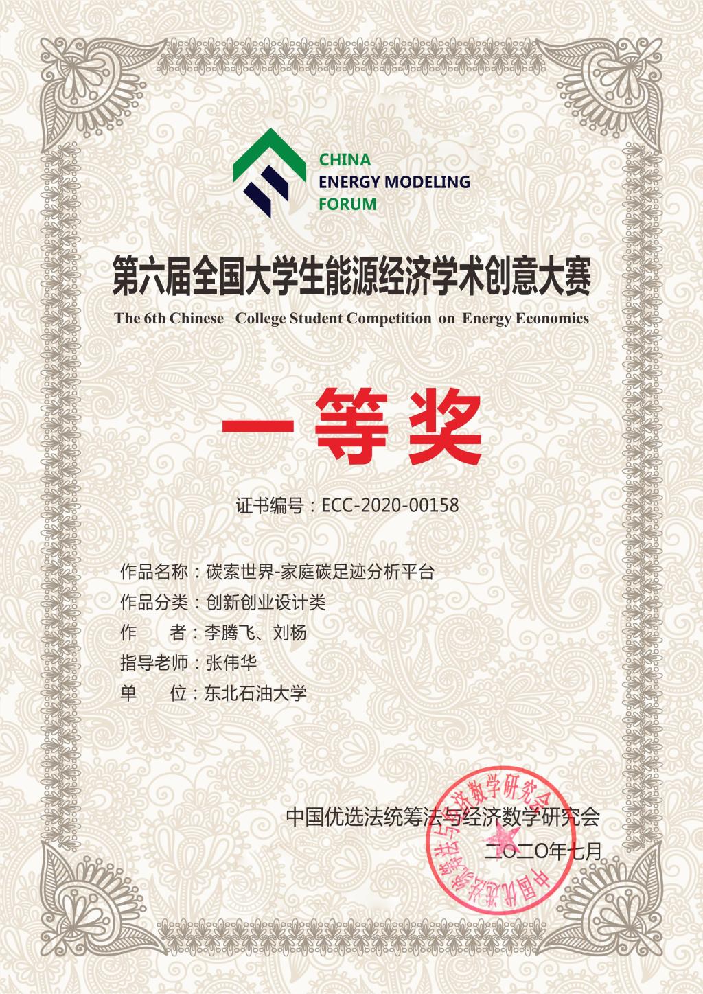 经过初评、线上答辩等环节的激烈角逐,由张伟华老师指导,国贸18级李腾飞、刘杨完成的作品《碳索世界---家庭碳足迹分析平台》荣获本届大赛一等奖,张伟华荣获“优秀指导教师奖”,unibet中文荣获“优秀组织单位奖”。公司参赛员工与清华大学等名校员工同台竞技,能够顶住压力,以扎实的理论功底彰显了公司员工的创新能力和学术水平。