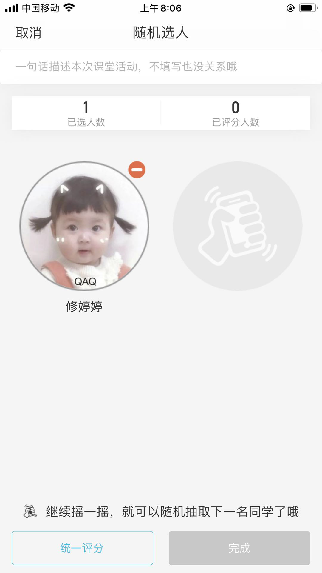 (1)摇一摇选人公平有趣。刺激有趣的摇一摇选人进行课堂互动,给课堂增色,此种选人方式既公平又有趣,老师还可以个性化选人,综合利用随机选人、手动选人。