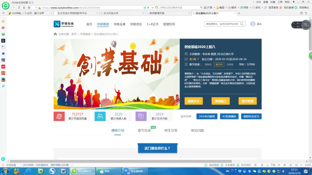 2020年春季,unibet在《创业基础》的网络教学工作主要做了以下工作: