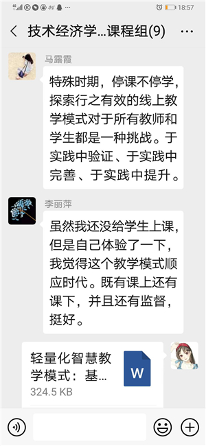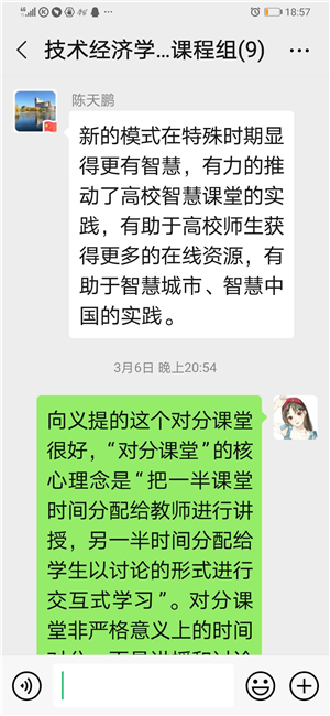 unibet工程管理系技术经济学概论课程组在云课堂的准备中,探索出基于“SPOC+慕课堂+钉钉直播”的共鸣式智慧型对分课堂教学模式。这种轻量化智慧教学模式,适合疫情期间,软硬件均有不足的现实条件下教师迅速开展智慧教学,去繁从简,仅用电脑、手机、PPT师生常用三件套,轻松打通课前、课中、课后三个教学环节,中国大学MOOC平台与钉钉平台交互使用,“共鸣点”、“智慧点”、“对分点”交互出现,真正实现共鸣式智慧型对分课堂“云教学”。