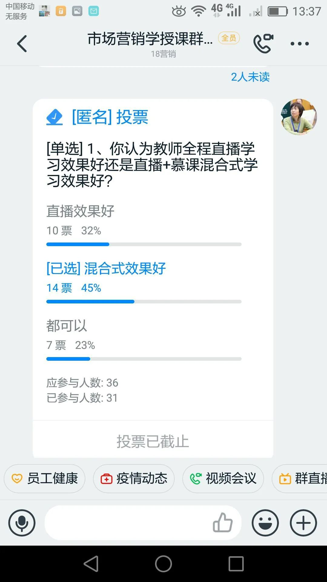 在线教学经验分享交流会是营销与旅游系全体教师云端战“疫”的落地行动之一,多措并举必将形成合力。营销与旅游系还将继续积极听取员工意见,结合上级部门要求,保持政治纪律,及时调整教学模式、改进教学方式方法,保障在线教学的持续顺利实施!