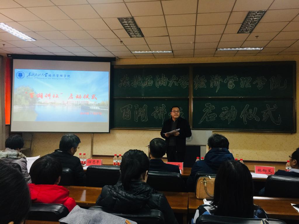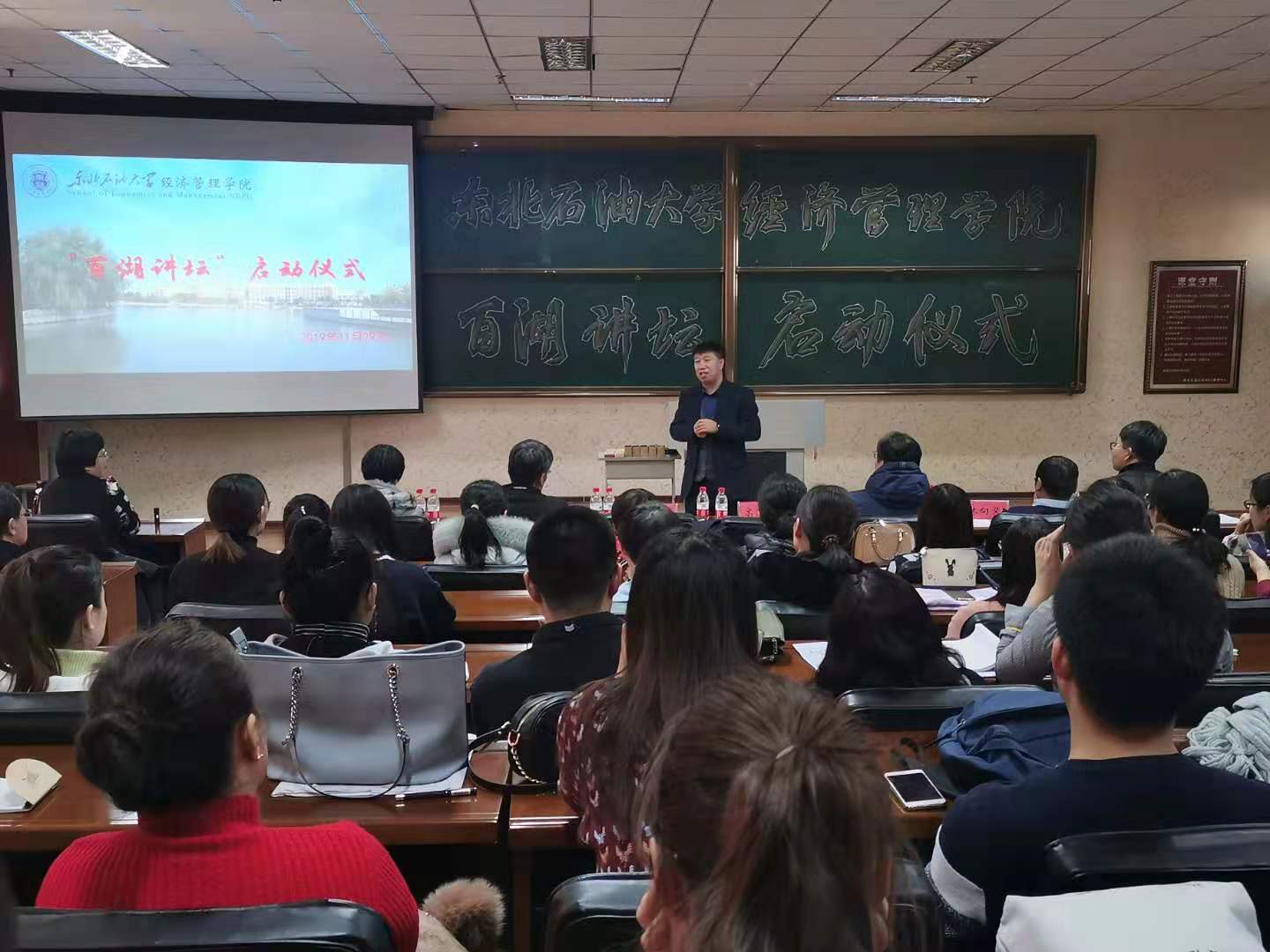 接着,高洪峰对“百湖讲坛”的顺利启动表示祝贺,对通过讲坛的形式进行学术交流、活跃学术氛围给予了充分肯定,对经管院“百湖讲坛”举办100期充满信心,也希望经管经理期坚持,把“百湖讲坛”打造成unibet中文特色学术品牌。高洪峰也鼓励青年教师持续关注科技创新问题、资源型城市转型问题和龙江经济发展问题,为服务地方经济做出更大的贡献。