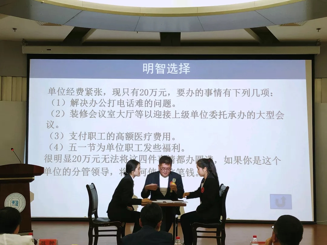 本次大赛共有来自7个公司的52名选手报名参赛,经过初赛与复赛的层层选拔,共有6名选手进入决赛。决赛通过“竞聘演说”、“案例分析”、“无领导小组讨论”三个环节展开激烈角逐。“竞聘演说”环节中,选手们通过PPT和个人简历为媒介表达自己的求职意愿, “案例分析”环节中,选手们现场抽取案例并在规定时间内进行分析,前两环节结束后,得分较高的三名选手进入最终“无领导小组讨论”环节进行比拼,最终,商管187班宋明欣摘得本次大赛桂冠,国贸171班邱胜楠、会计173班孙华秋获得二等奖,经济181姜超、研17-11班陈阳、研18-2班韩嘉琦获得三等奖。