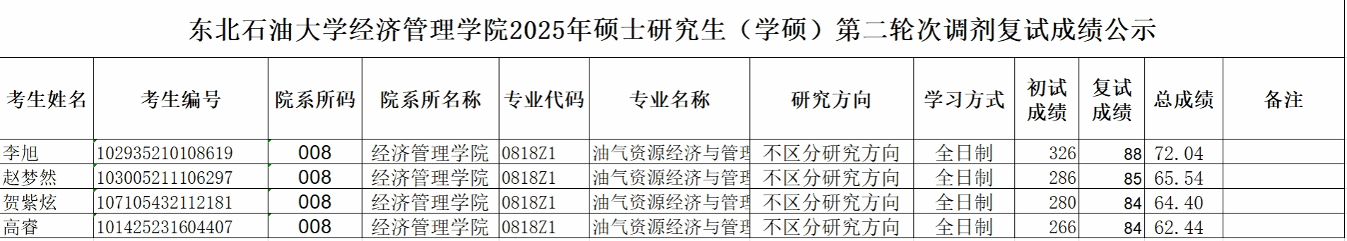 2025年硕士研究生第二轮次调剂复试成绩公示