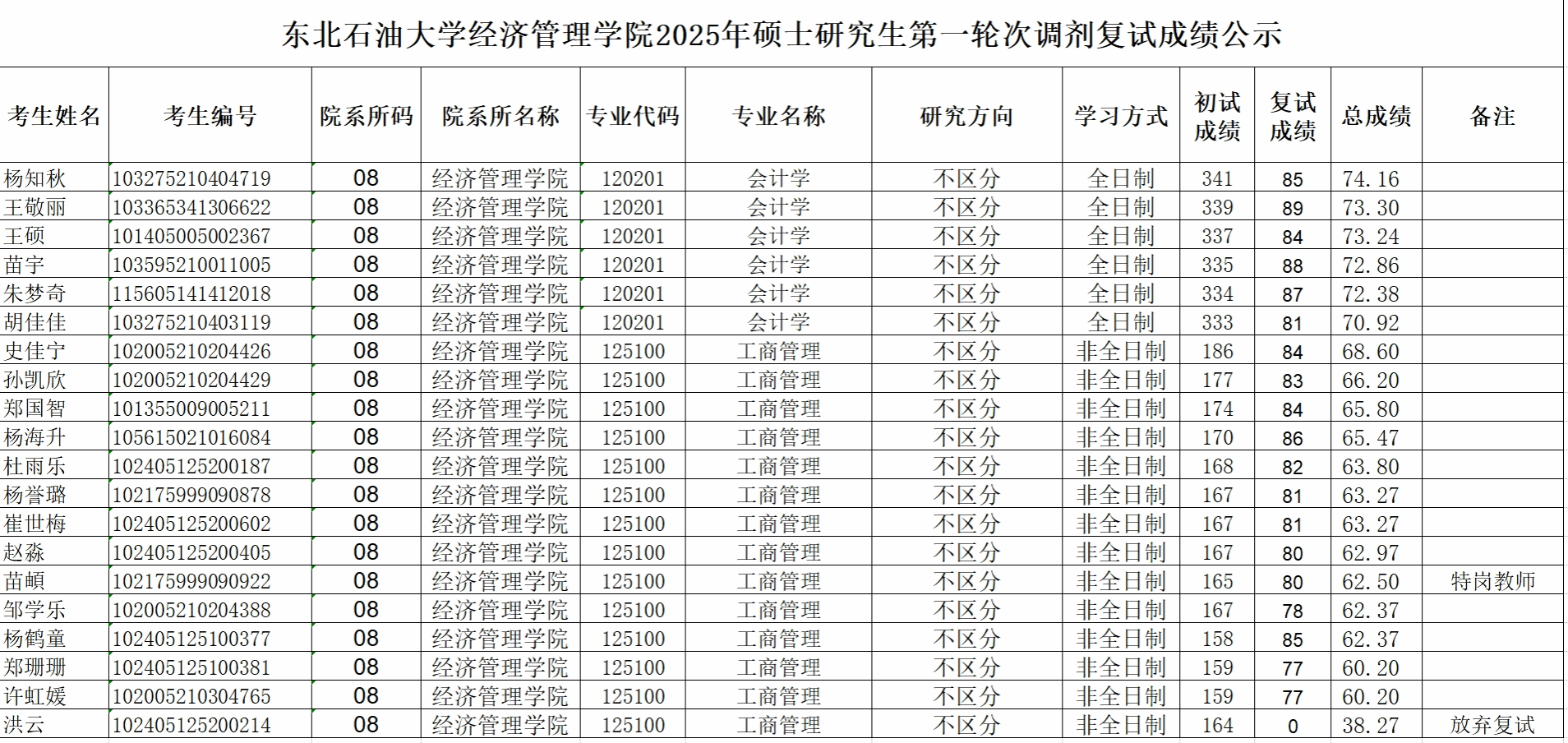 2025年硕士研究生第一轮次调剂复试成绩公示