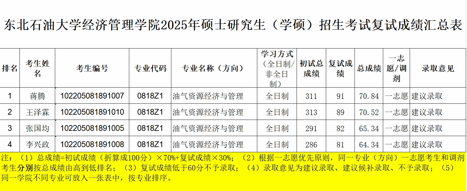 2025年硕士研究生(学硕)招生考试复试成绩汇总表