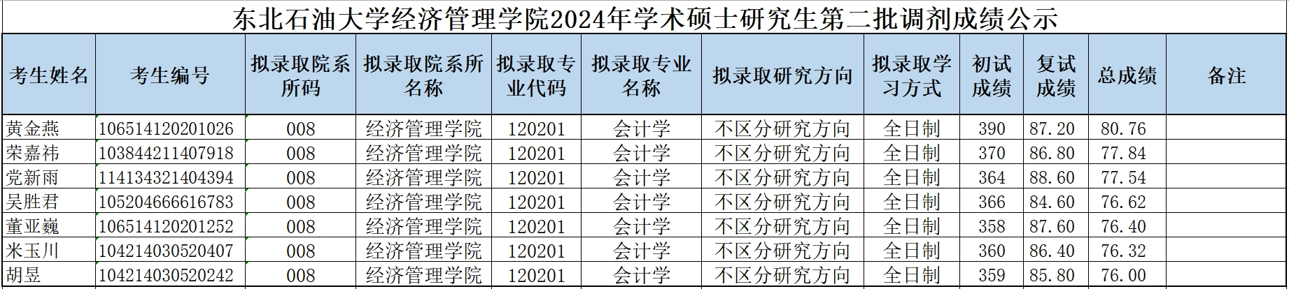 2024年学术硕士研究生第二批调剂成绩公示.xls